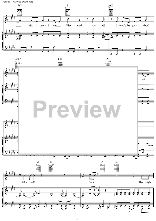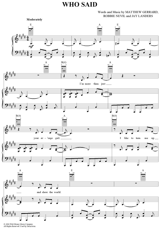 Digital Sheet Music for Who Said by Matthew Gerrard, Robbie Nevil, Hannah Montana, Jay Landers scored for Piano/Vocal/Chords; id:366976