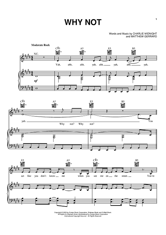 Digital Sheet Music for Why Not by Charlie Midnight, Matthew Gerrard, Hilary Duff scored for Piano/Vocal/Chords; id:373537