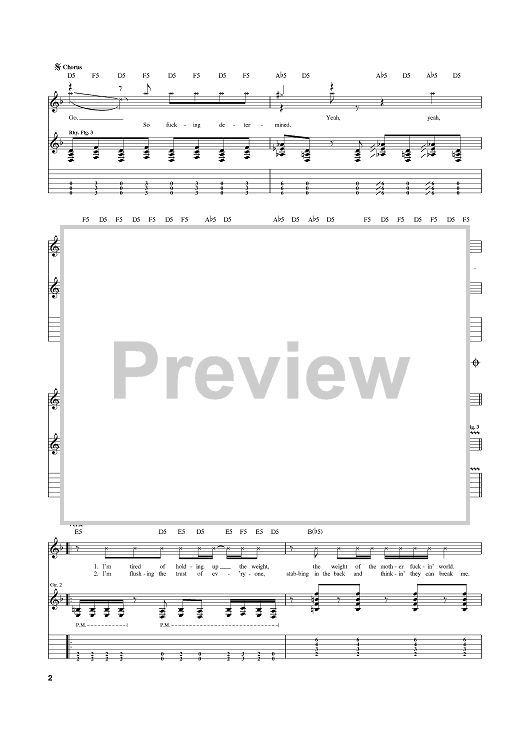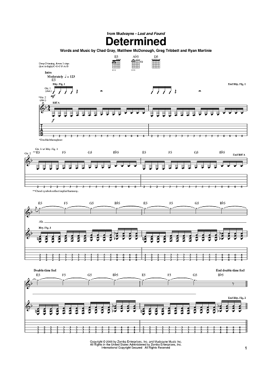 Digital Sheet Music for Determined by Matthew McDonough, Gurrg, Ry-Know, Chad Gray, Mudvayne scored for Guitar Tab; id:387261