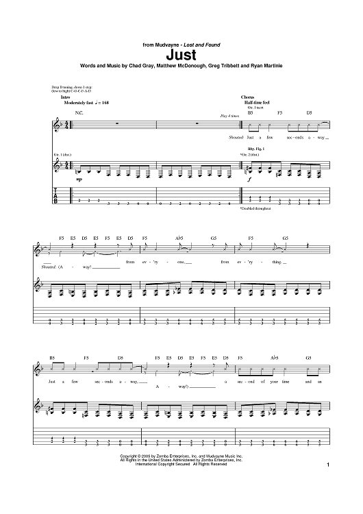 Digital Sheet Music for Just by Matthew McDonough, Gurrg, Ry-Know, Chad Gray, Mudvayne scored for Guitar Tab; id:387266