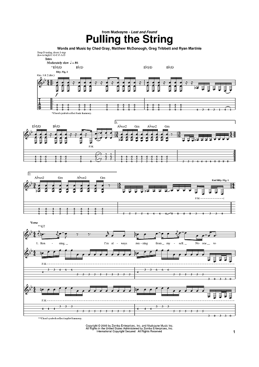 Digital Sheet Music for Pulling The String by Matthew McDonough, Gurrg, Ry-Know, Chad Gray, Mudvayne scored for Guitar Tab; id:387270