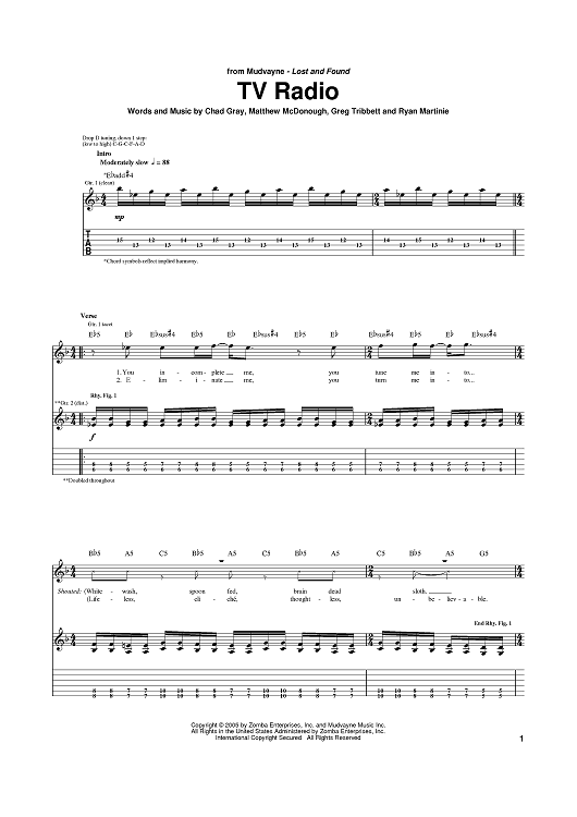 Digital Sheet Music for TV Radio by Matthew McDonough, Gurrg, Ry-Know, Chad Gray, Mudvayne scored for Guitar Tab; id:387260