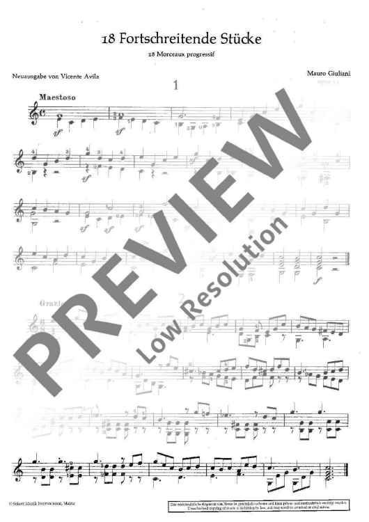 Digital Sheet Music for 18 progressive Pieces by Mauro Giuliani scored for Guitar; id:475714