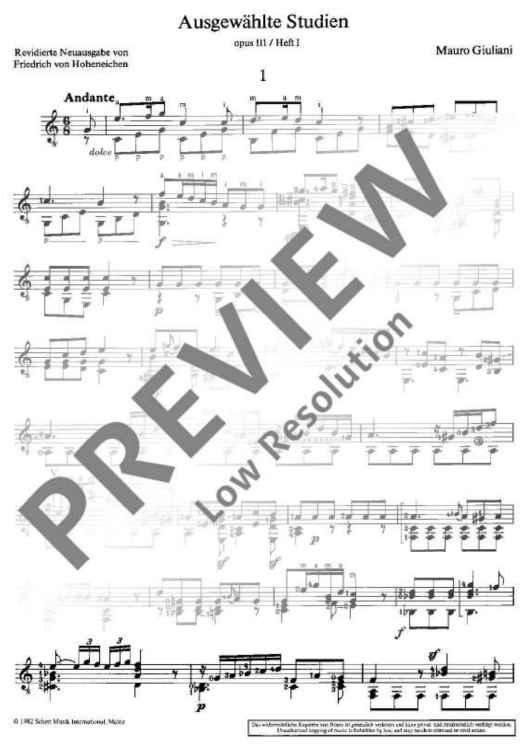 Digital Sheet Music for Selected Studies by Mauro Giuliani scored for Guitar; id:475712