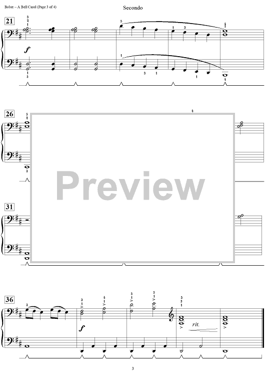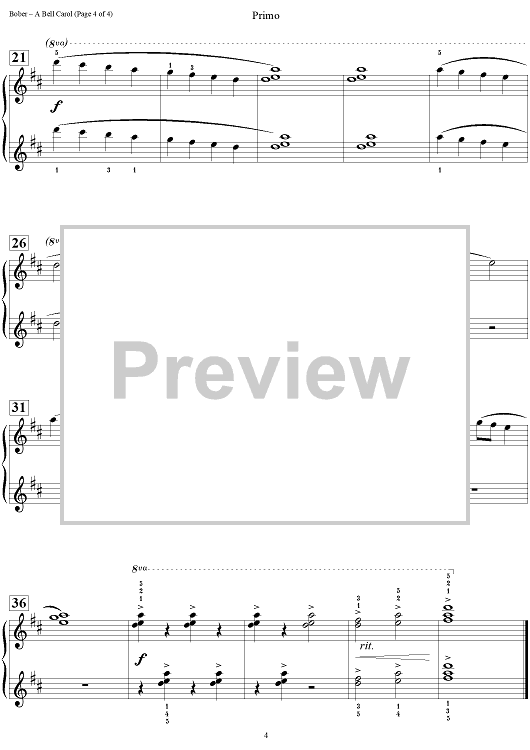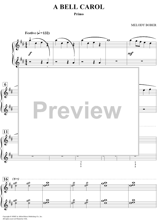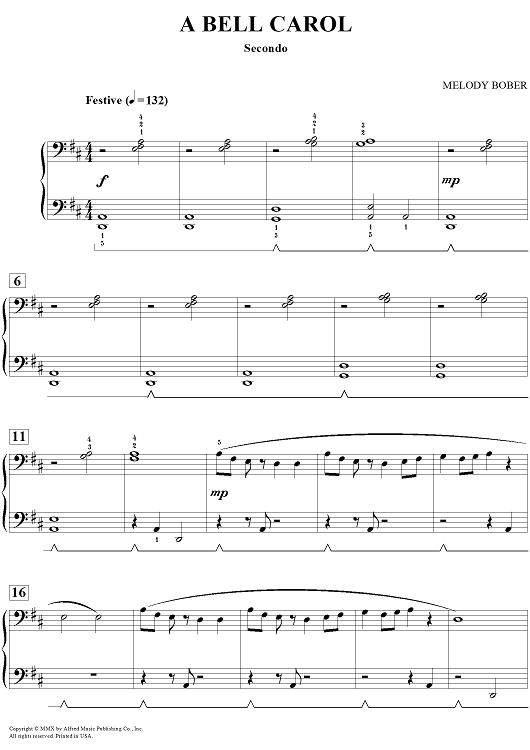 Digital Sheet Music for A Bell Carol by Melody Bober scored for 1 Piano, 4 Hands; id:468953