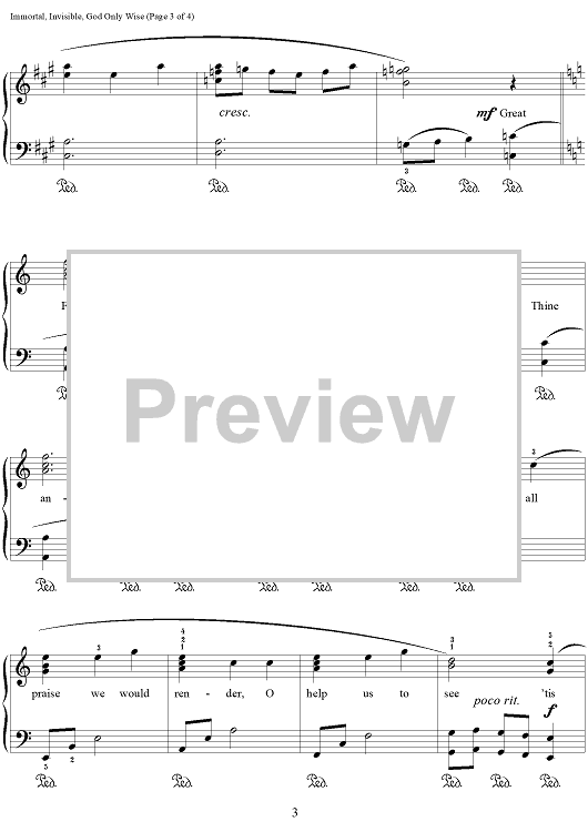"Immortal, Invisible, God Only Wise" Sheet Music by Traditional Welsh Melody