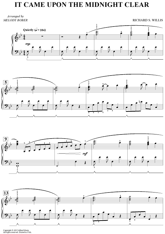 Digital Sheet Music for It Came Upon The Midnight Clear by Richard Storrs Willis, Melody Bober scored for Piano; id:458948