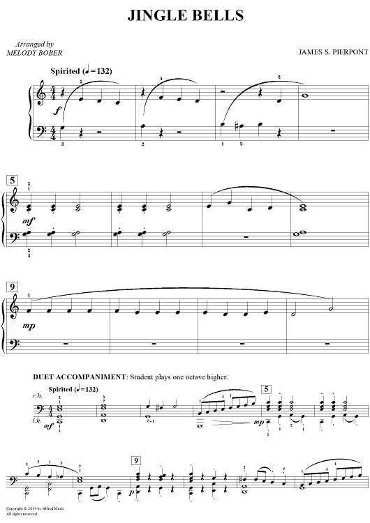 Digital Sheet Music for Jingle Bells by James Pierpont, Melody Bober scored for Piano; id:459864