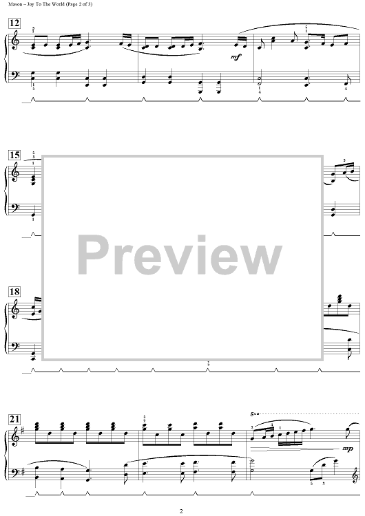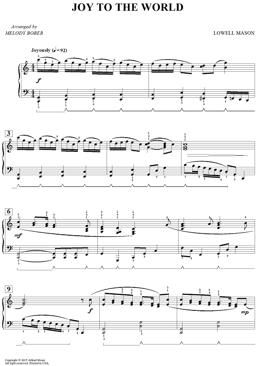 Digital Sheet Music for Joy To The World by Lowell Mason, Melody Bober scored for Piano; id:458956