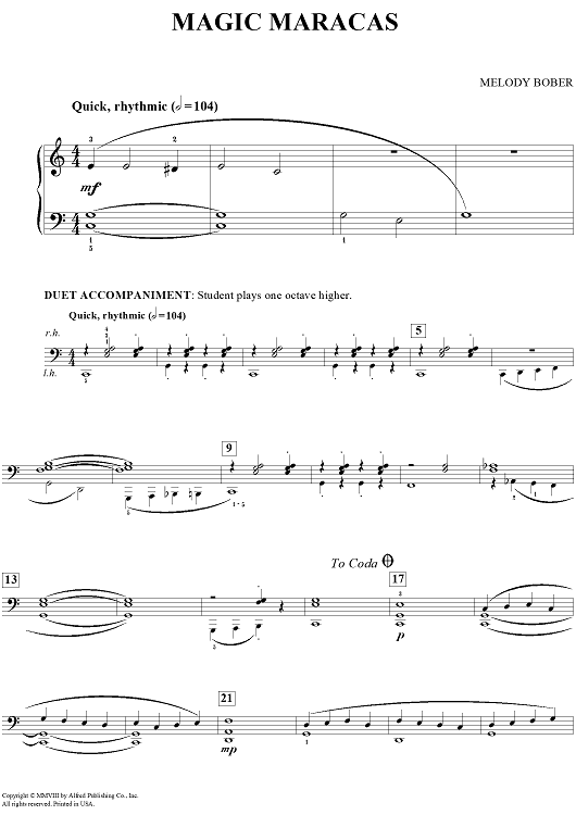 Digital Sheet Music for Magic Maracas by Melody Bober scored for Piano; id:457587
