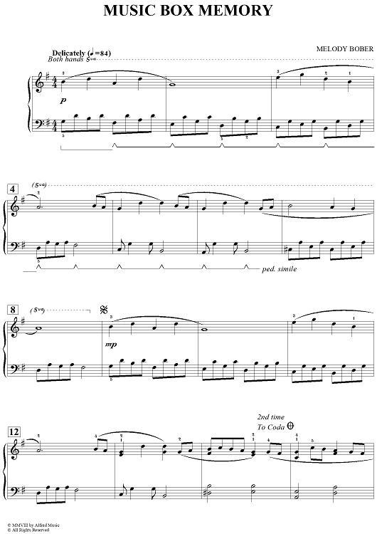 Digital Sheet Music for Music Box Memory by Melody Bober scored for Piano; id:456498