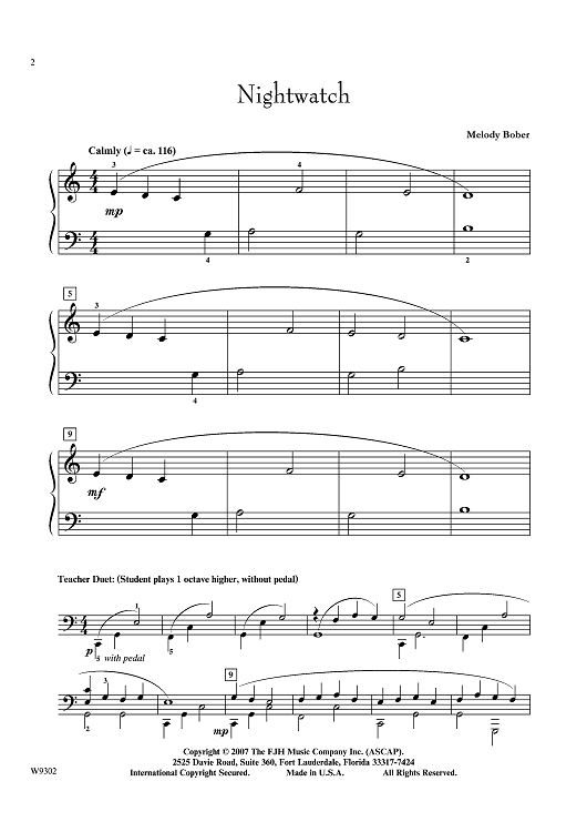 Written in the Middle C position, this elementary solo has a variety of dynamics, a teacher accompaniment, and an interesting ending using whole tone scale passages.