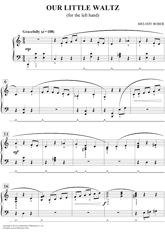 "Our Little Waltz (for the left hand)" Sheet Music by Melody Bober