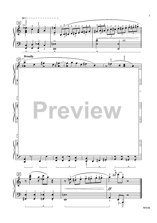 This piece will delight students with its jazzy and playful sound. It contains swing eighths, syncopation, chromatic passages, and a variety of articulations, as well as the "show-biz" effect of the stride-bass left hand in the closing section.