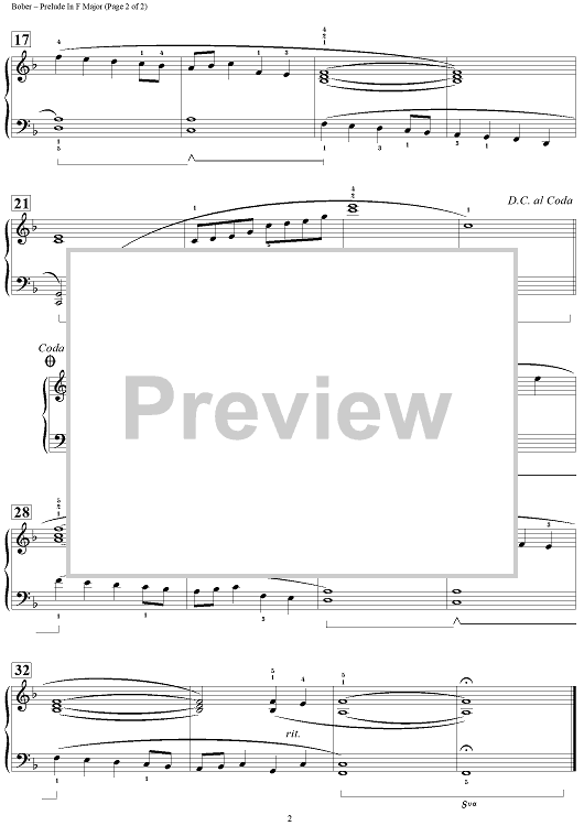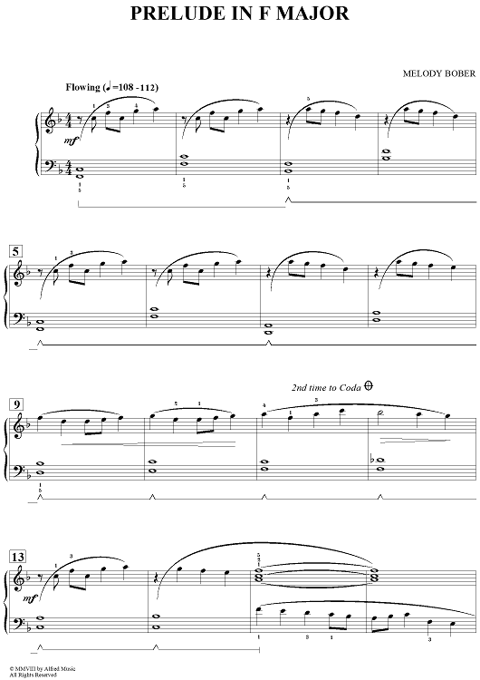 Digital Sheet Music for Prelude in F Major by Melody Bober scored for Piano; id:456484