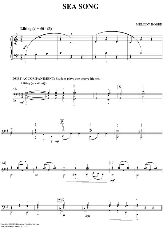 Digital Sheet Music for Sea Song by Melody Bober scored for Piano; id:457588