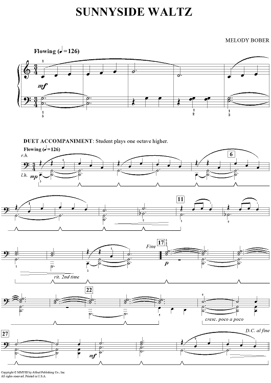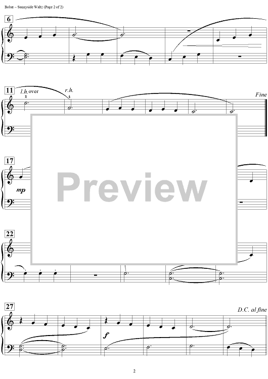 Digital Sheet Music for Sunnyside Waltz by Melody Bober scored for Piano; id:456906
