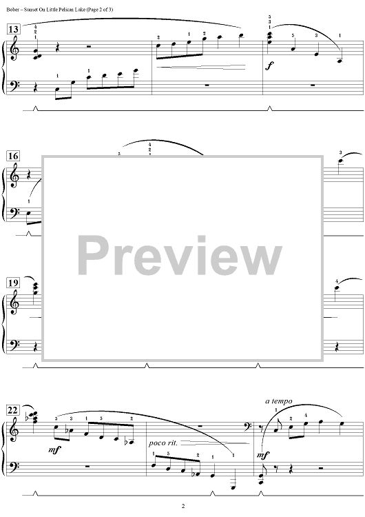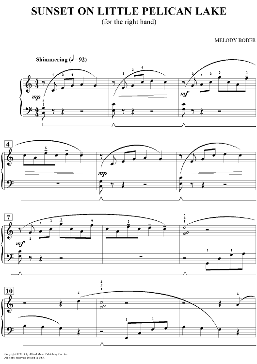 "Sunset On Little Pelican Lake (for the right hand)" Sheet Music by Melody Bober
