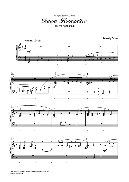 "Tango Romantico (for the right hand)" Sheet Music by Melody Bober