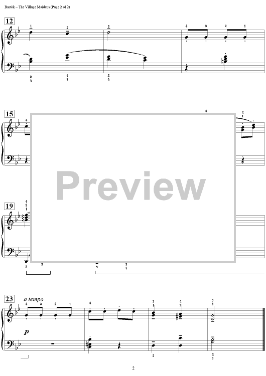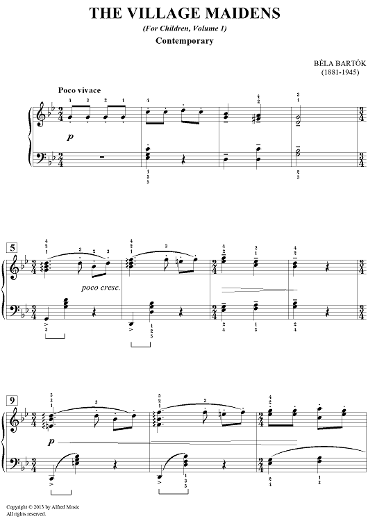 Digital Sheet Music for The Village Maidens (Contemporary) by Bela Bartok, Melody Bober scored for Piano; id:463268