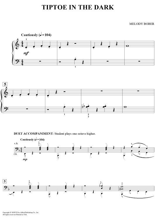 Digital Sheet Music for Tiptoe In The Dark by Melody Bober scored for Piano; id:457592