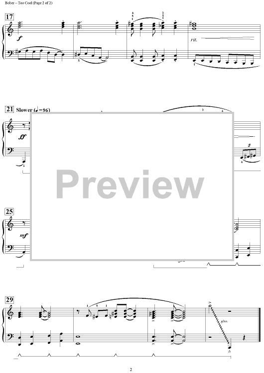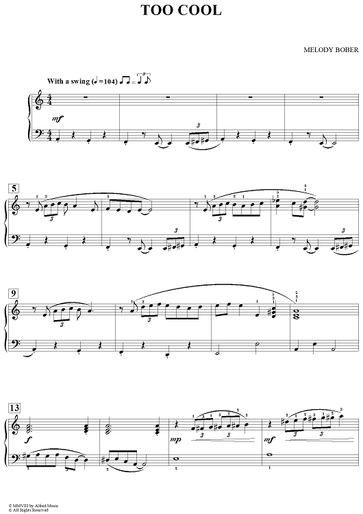 Digital Sheet Music for Too Cool by Melody Bober scored for Piano; id:456497