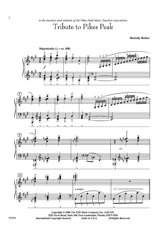"Tribute to Pikes Peak" Sheet Music by Melody Bober