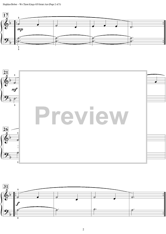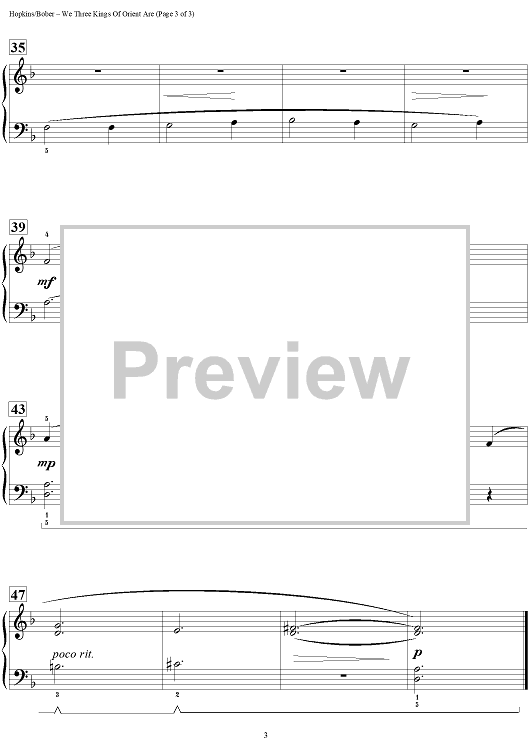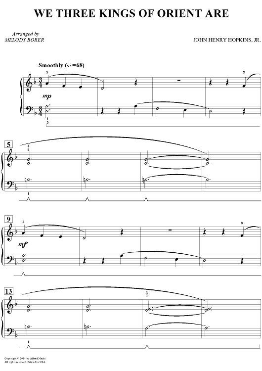 Digital Sheet Music for We Three Kings Of Orient Are by John Henry Hopkins, Jr., Melody Bober scored for Piano; id:459913