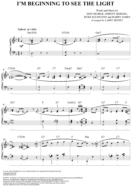 Digital Sheet Music for I'm Beginning to See the Light by Duke Ellington, Johnny Hodges, Don George, Larry Minsky, Harry James scored for Piano Solo; id:287237