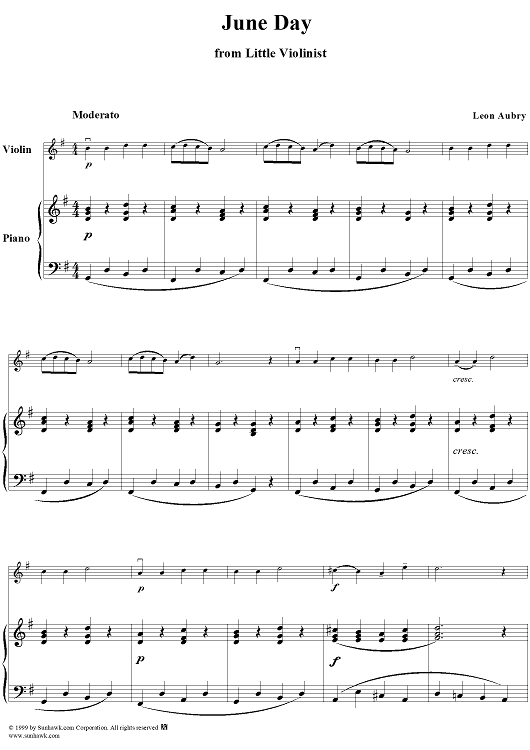 Digital Sheet Music for Little Violinist - June Day by Leon Aubry scored for Violin/Piano; id:276905