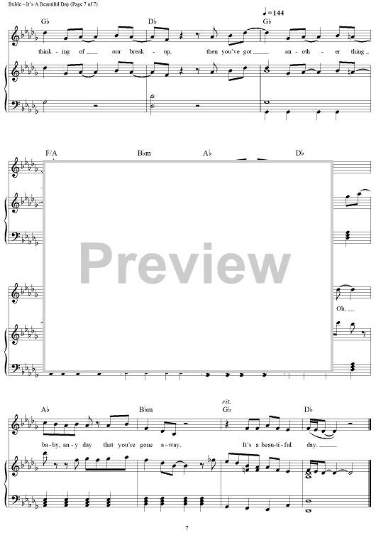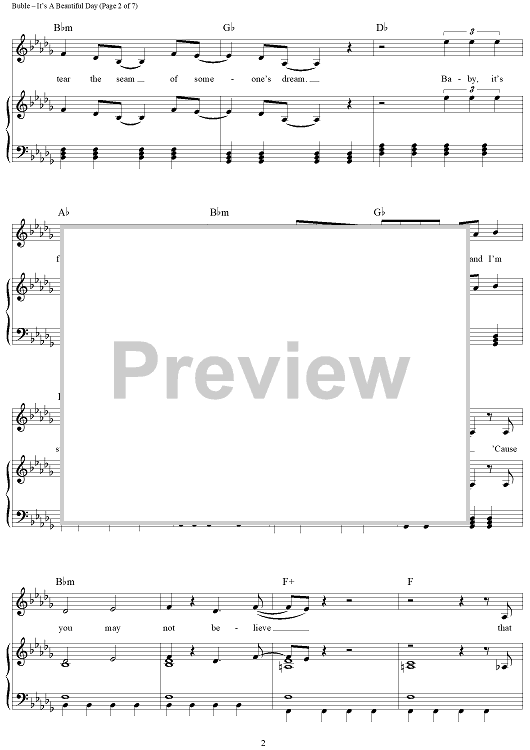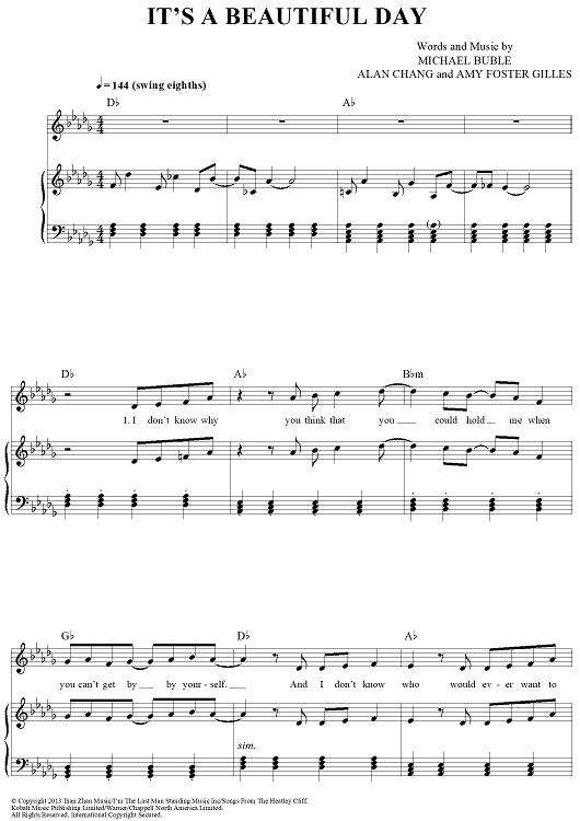 Digital Sheet Music for It's A Beautiful Day by Michael Buble, Alan Chang, Amy S. Foster scored for Piano/Vocal/Chords; id:435212