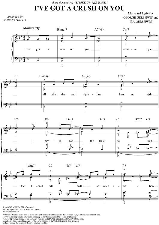 Digital Sheet Music for I've Got a Crush on You by Frank Sinatra, George Gershwin, Ira Gershwin, John Brimhall, Michael Buble, Barbra Streisand scored for Easy Piano/Vocal; id:268301