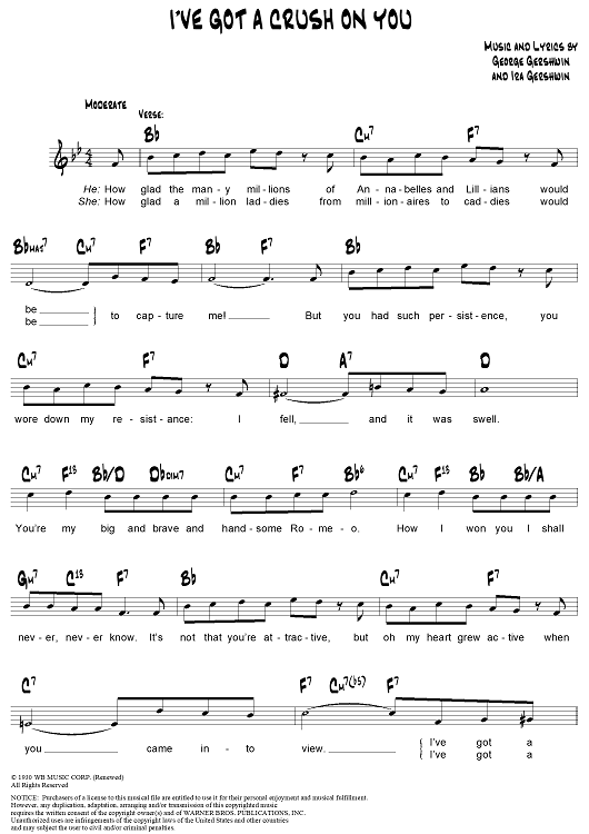 Digital Sheet Music for I've Got a Crush on You by Frank Sinatra, George Gershwin, Ira Gershwin, Michael Buble, Barbra Streisand scored for Lead Sheet; id:312484