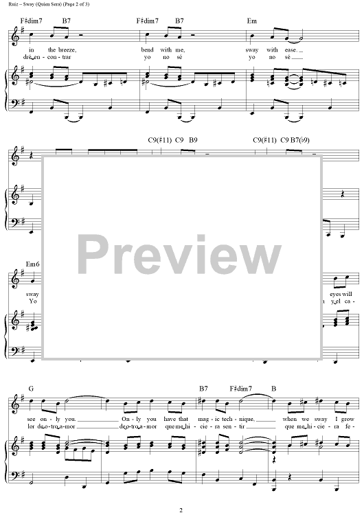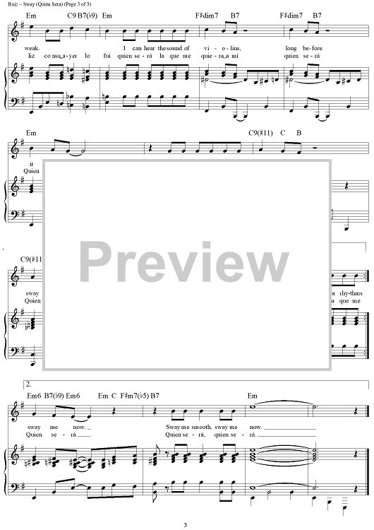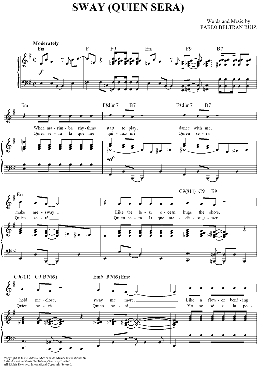 Digital Sheet Music for Sway (Quien Sera) by Pablo Beltran Ruiz, Michael Buble scored for Piano/Vocal/Chords; id:410487