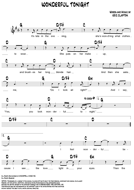 "Wonderful Tonight" Sheet Music by Eric Clapton