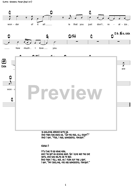 Digital Sheet Music for Wonderful Tonight by Eric Clapton, Don Williams, Michael Buble, David Kersh, Butch Baker scored for Lead Sheet; id:308105