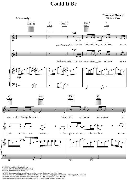 Digital Sheet Music for Could it Be by Michael Card scored for Piano/Vocal/Chords; id:119163