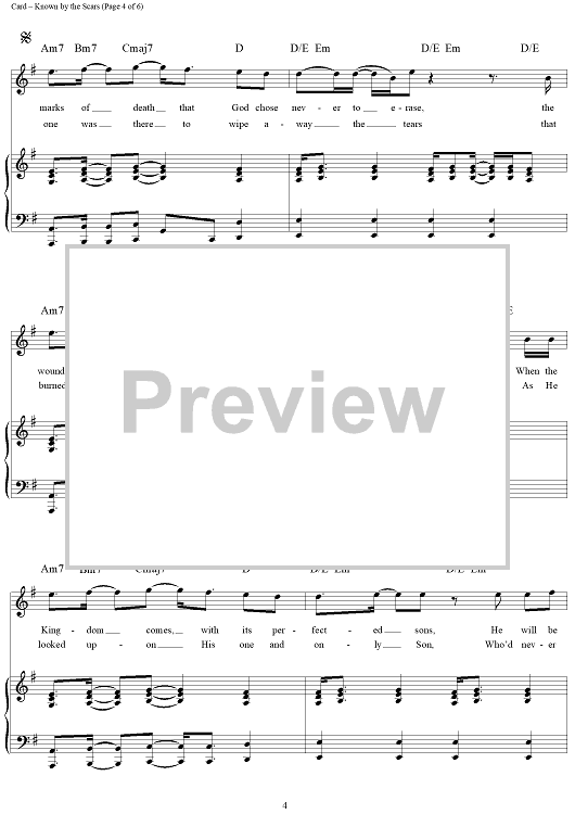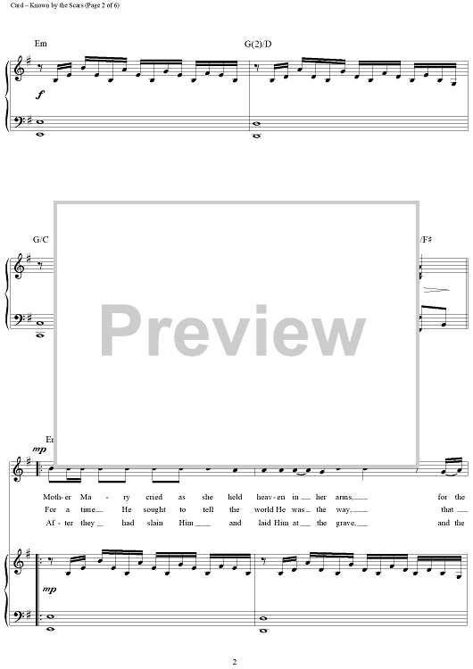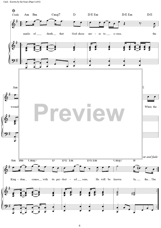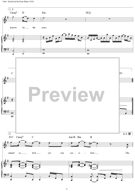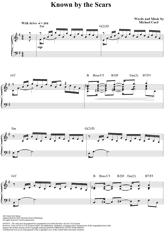 Digital Sheet Music for Known By the Scars by Michael Card scored for Piano/Vocal/Chords; id:119224