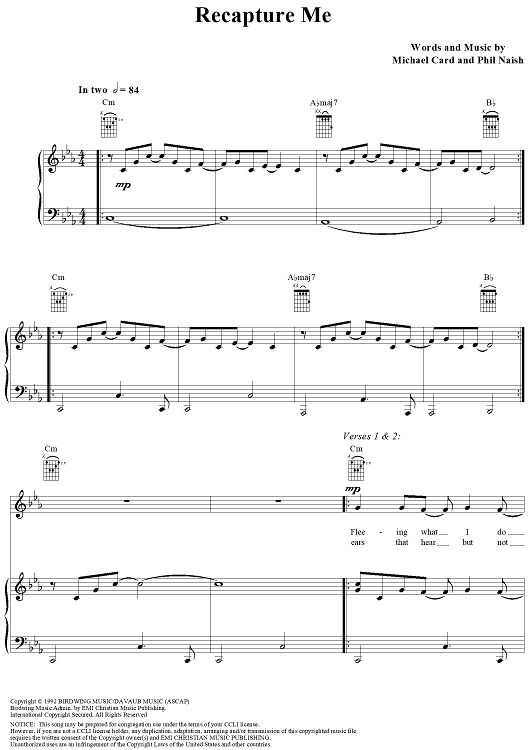 Digital Sheet Music for Recapture Me by Michael Card, Phil Naish scored for Piano/Vocal/Chords; id:240987