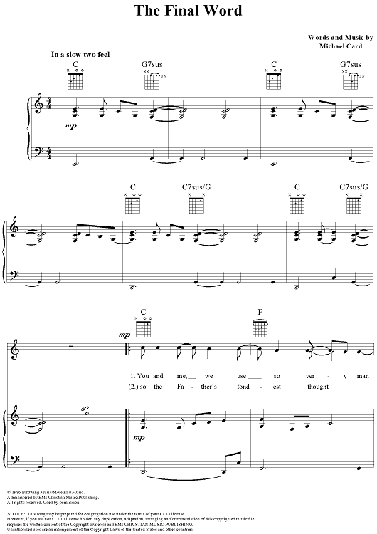 Digital Sheet Music for The Final Word by Michael Card scored for Piano/Vocal/Chords; id:119197