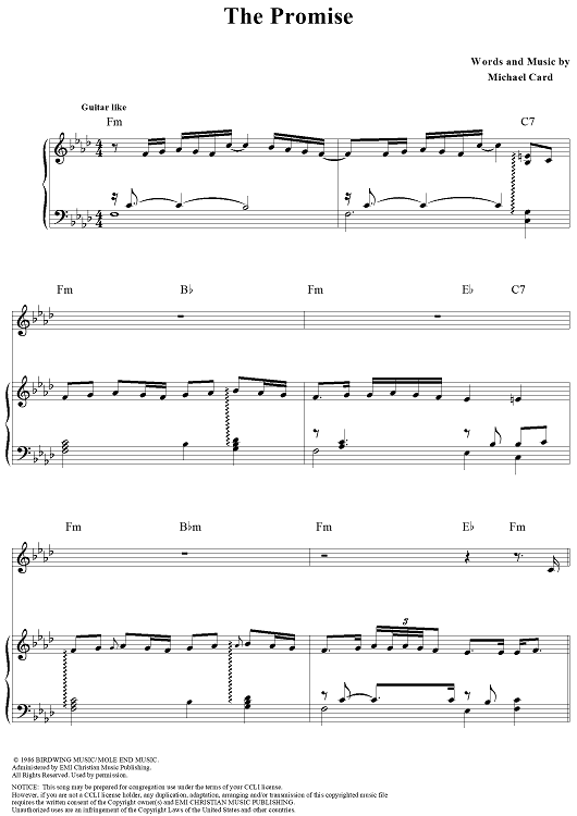 Digital Sheet Music for The Promise by Michael Card scored for Piano/Vocal/Chords; id:274077
