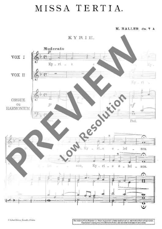 Digital Sheet Music for Missa tertia - Score and Parts by Michael Haller scored for Voices And Organ; id:477572