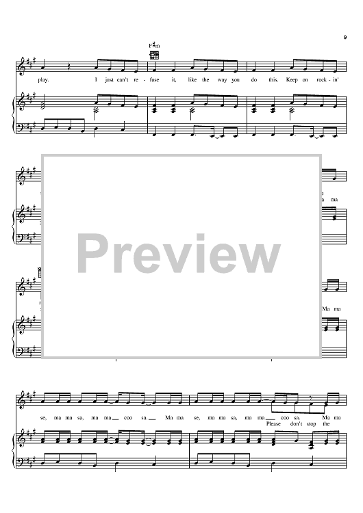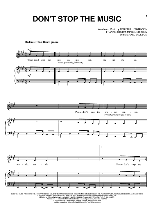 Digital Sheet Music for Don't Stop The Music by Michael Jackson, Tor Erik Hermansen, Rihanna, Frankie Storm, Mikkel Eriksen scored for Piano/Vocal/Chords; id:402835