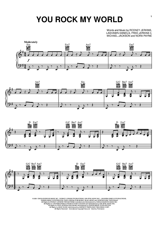 Digital Sheet Music for You Rock My World by Michael Jackson, LaShawn Daniels, Fred Jerkins III scored for Piano/Vocal/Chords; id:368818