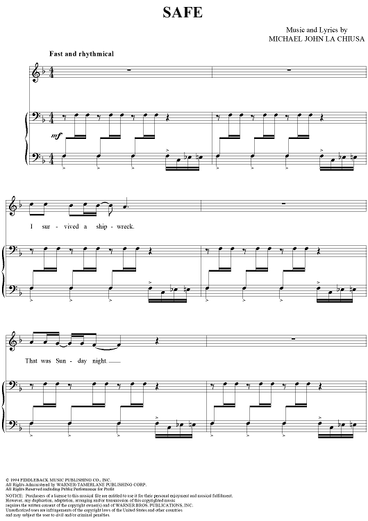 Digital Sheet Music for Safe by Michael John LaChiusa scored for Piano/Vocal; id:235798