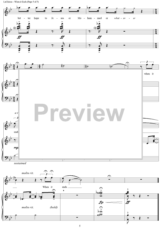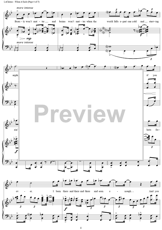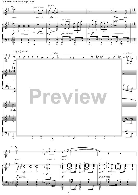 Digital Sheet Music for When It Ends by Michael John LaChiusa scored for Piano/Vocal; id:286370