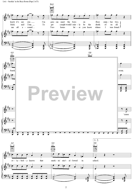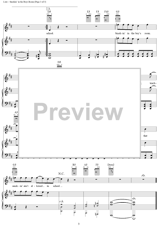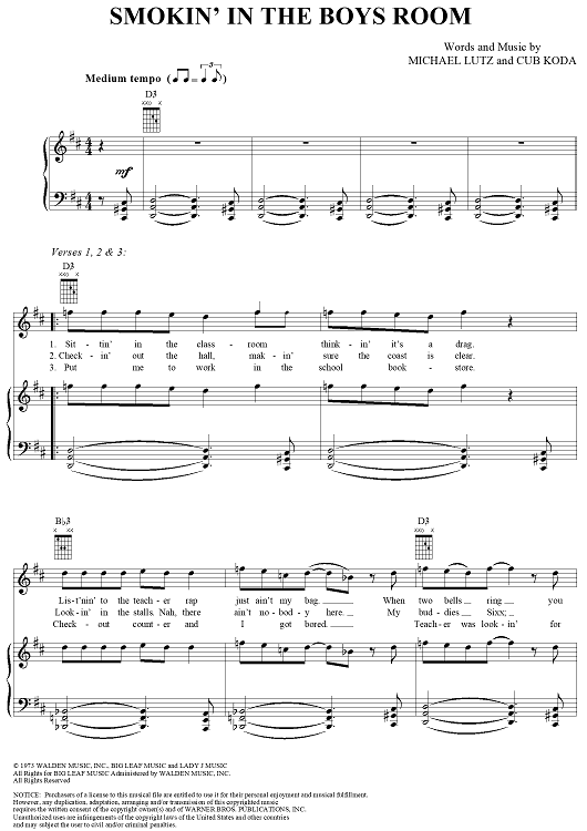 Digital Sheet Music for Smokin' in the Boys Room by Michael Lutz, Cub Koda, Brownsville Station scored for Piano/Vocal/Chords; id:293656