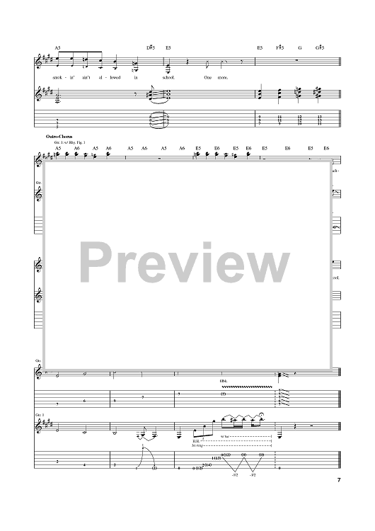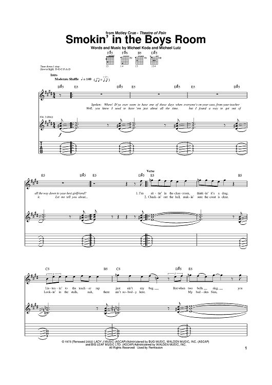 Digital Sheet Music for Smokin' In The Boys Room by Mötley Crüe, Ramones, Michael Lutz, Cub Koda, Brownsville Station scored for Guitar Tab; id:374467