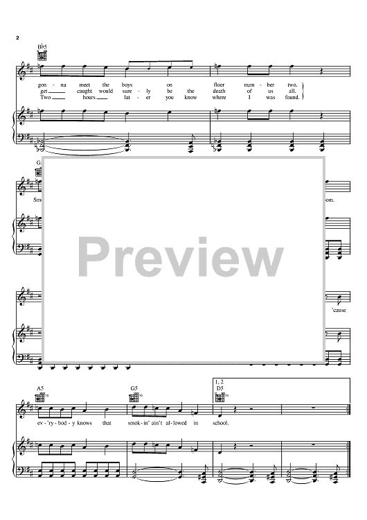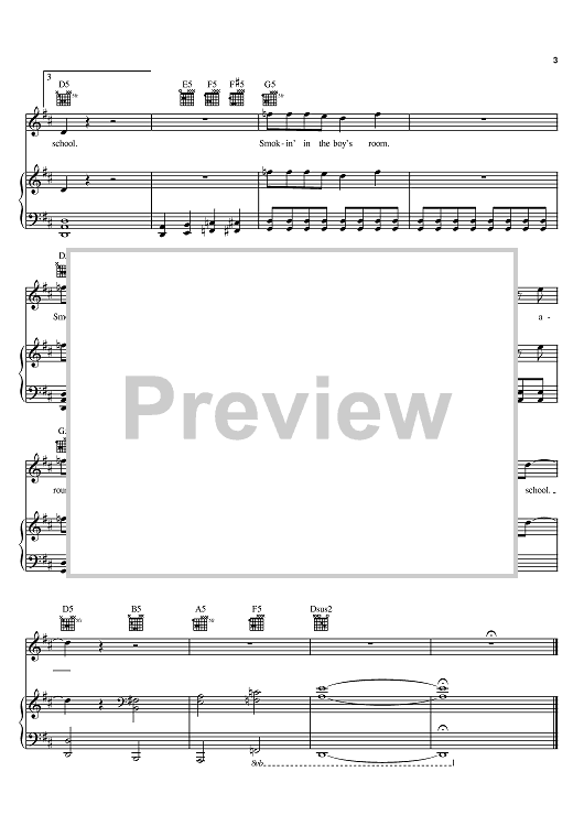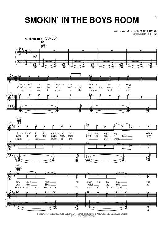 Digital Sheet Music for Smokin' In The Boys Room by Mötley Crüe, Michael Lutz, Brownsville Station, Michael Koda scored for Piano/Vocal/Chords; id:384131