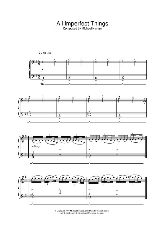 Digital Sheet Music for All Imperfect Things by Michael Nyman scored for Piano; id:386966